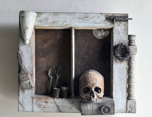 El mural en forma de "L" no será la única sorpresa que brindará el barrio. Por encargo del Concello, Villalobos ha diseñado una escultura de cuatro metros de alto por 1,3 de ancho, formada por láminasde acero inoxidable pintadas con esmalte blanco. "El color se escogió para transmitir sensación de paz", explica el artista. Toda la plazuela compone un homenaje al alcalde socialista que bautiza la avenida, Emilio Martínez Garrido, fusilado en agosto de 1936 contra la tapia del cementerio de Pereiró junto a Heraclio Botana, los hermanos Demetrio y Antonio Bilbatúa y el alcalde de Lavadores, Antela Conde. En la misma causa sumarial estaba incluido, entre otros, Gil Santostegui. "La escultura juega con la sensación de vacío y crea una especie de flecha que apunta hacia el interior, el vínculo entre esas personas", relata el escultor. La figura se situará sobre una franja de césped, en el ángulo del mural.