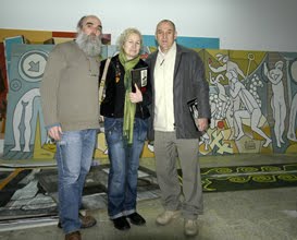 El alcalde de Vigo Abel Caballero visita la nave donde Nelson Villalobos realiza el mural para la plaza de Martínez Garrido.